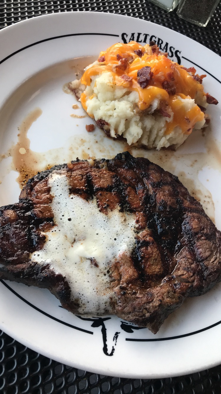 Instead of Getting An Appetizer I Got Cesar Salad, one of My Favorite Go To’s. The Salad Was Pretty Good With Some Black Pepper. They Make All Their Dressings Homemade & You Can Definitely Tell Because it Just Tasted So Crisp & Fresh. Im Not A Big Fan of Croutons So I Ended Up Picking Them Out. While Eating My Salad I Kept Browse the Menu to Try and Figure Out Exactly What I Wanted. I Went With Pats Ribeye Cooked Medium With A Side of Loaded Mashed Potatoes.