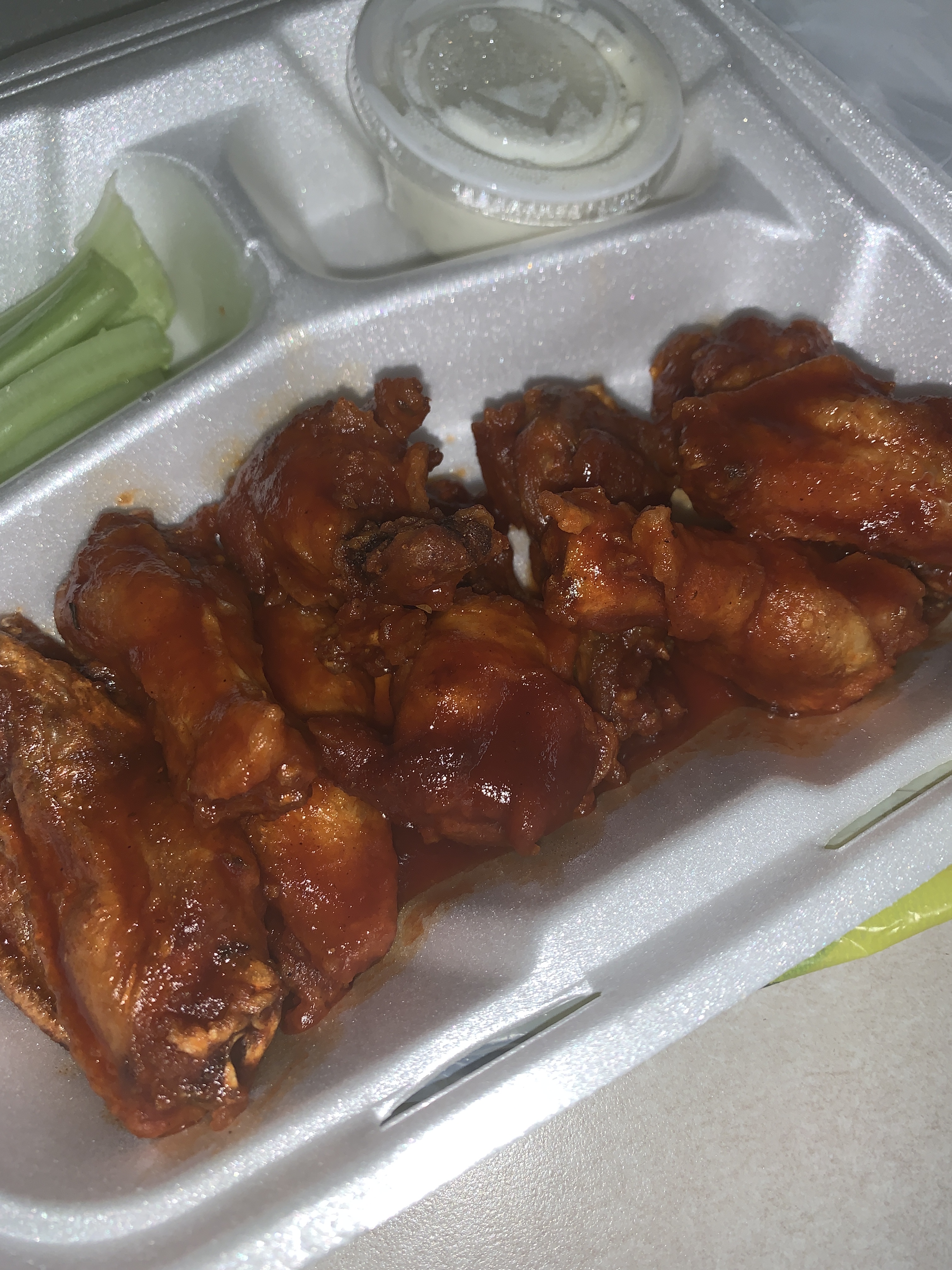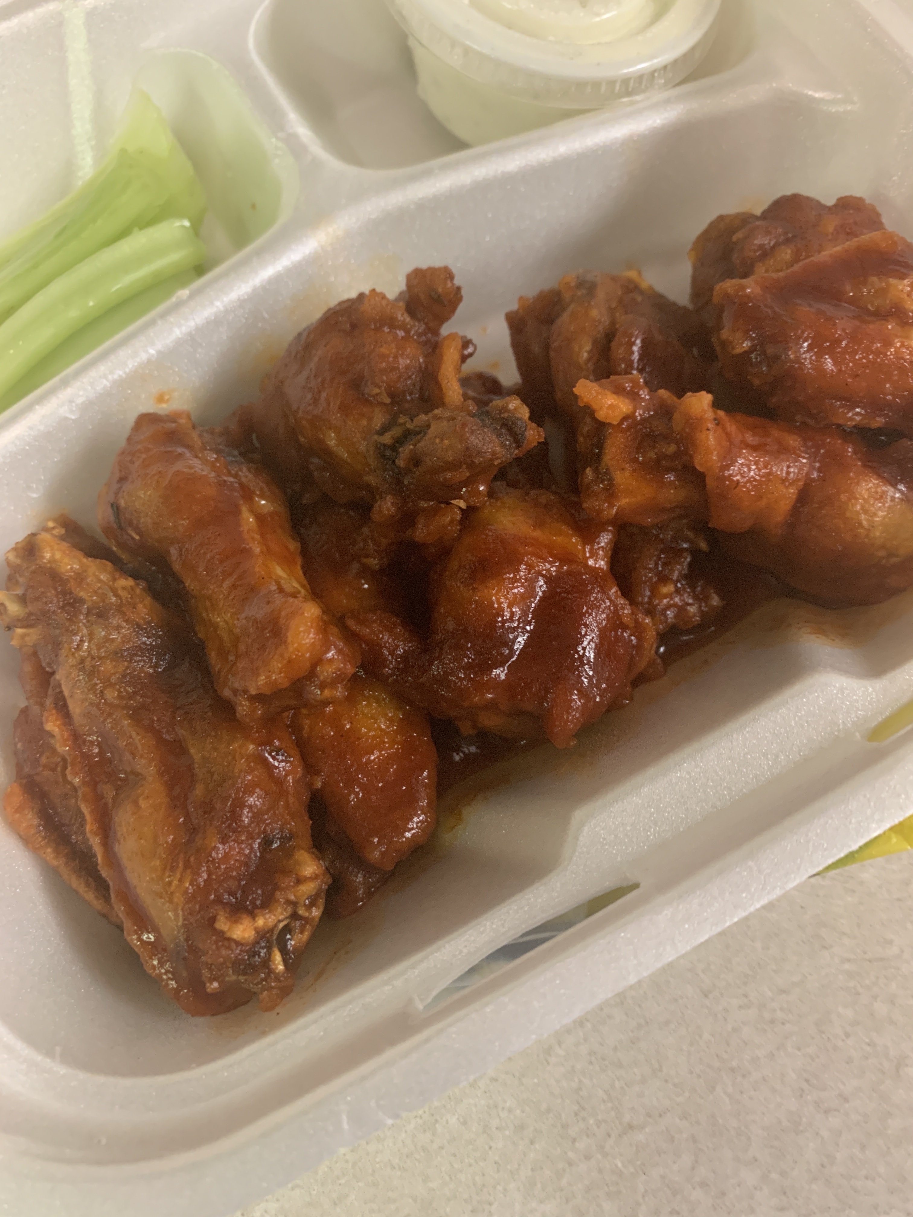 The Wings Weren’t Super Saucy But it Had Just Enough to Perfectly Coat The Wings. The Flavor Was Really Good, it Was A Perfect Mix of Sweet & Spicy and You Could Taste A Hint of Honey. Everything Balanced Out Well, it Wasn’t To Sweet or Too Spicy. As Far as the Size of The Wings The Were A Bit on The Skimpy Side but Still Very Filling.