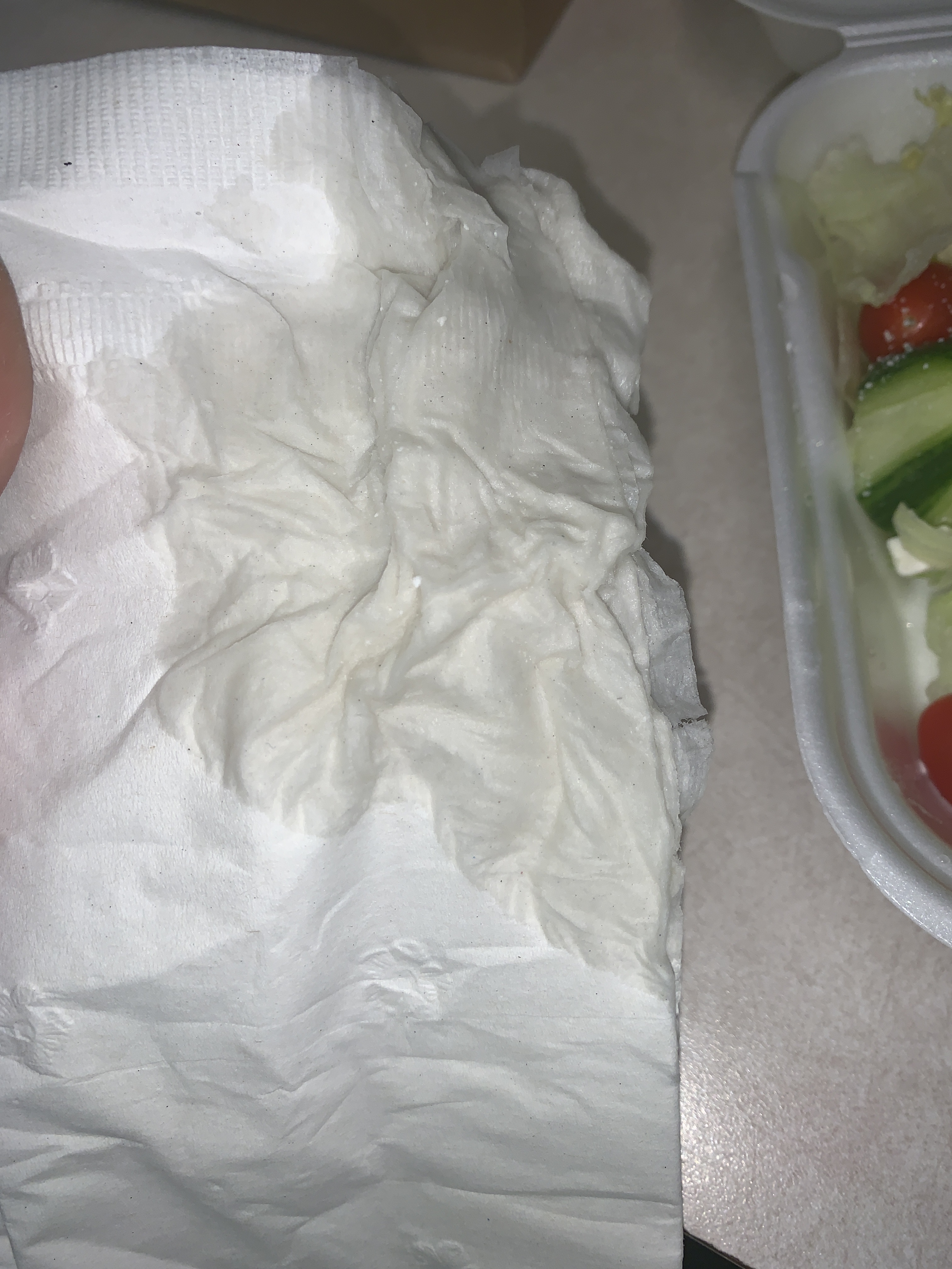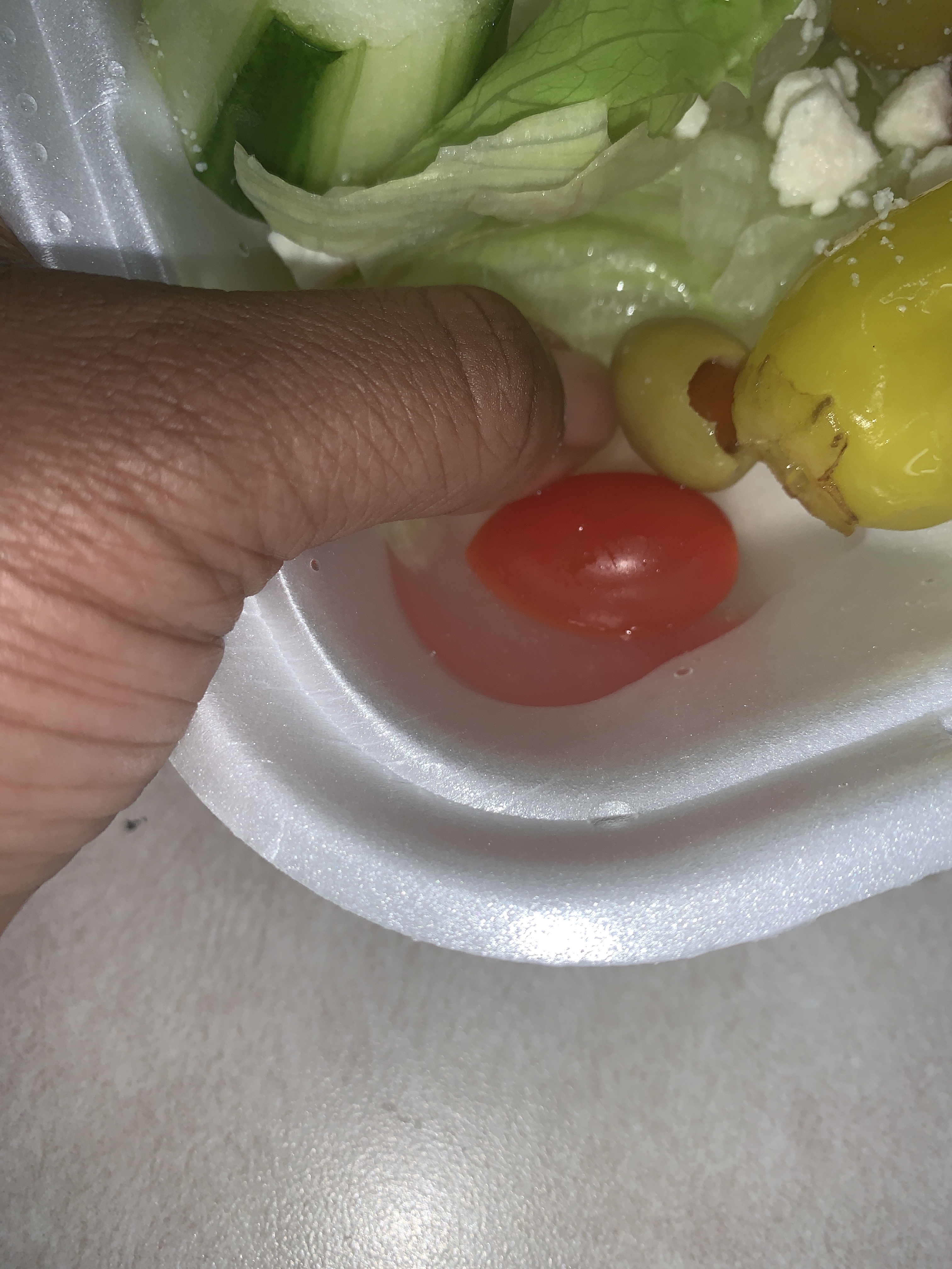 The Salad Look Pretty Good but Only Issue I Had Was The Pool of Water at the Bottom of My Container. Now Dont Get Me Wrong im Glad to Know The Wash Their Produce but The Mess They Left Was A Bit Unprofessional to Me. I Had to Use A Napkin to Sop Up the Water Before Eating it. Also They Could Have Cut The Lettuce into More Bite Sized Edible Pieces. Other Than That The Salad Was Pretty Good but im Be Skeptical to Order it Again Because I Dont Want To Come Across the Same issue.
