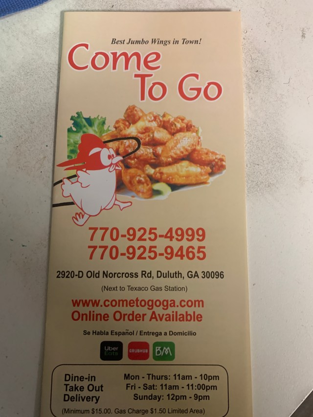 Located on 2029 Old Norcross Road #D Duluth,Ga.30096 This Wing Place is Guaranteed to Knock Your Socks Off. With A Large Menu Variety You Almost Cant Pick The Wrong Thing. I First Came Across This Restaurant When My Manager Purchased Us Lunch On Evening. Im Glad I Didn’t Pass Up on The Offer Because The Had Some REALLY Good Food! They Offer Chicken,Burgers,Subs, Lo Mein, Salads,Wraps & Much More. Reminds Me Of The Mom & Pop Chinese Restaurants We Have Back in Florida.
